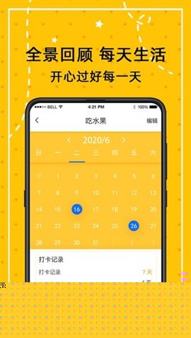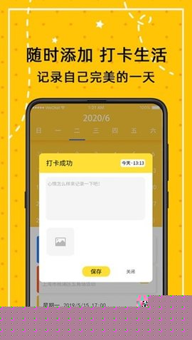 整体设计清新友好,操作路径直观,配合丰富的个性化图标与背景,将功能性的打卡行为转化为一种具有仪式感和愉悦感的日常体验。