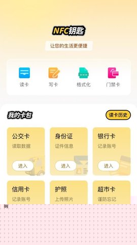 内置高频段射频读写芯片驱动,可将门禁卡、交通卡等实体卡片数据加密存储于移动终端。