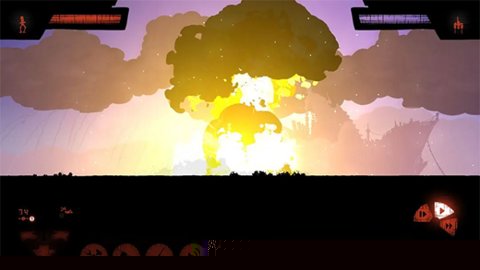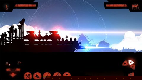 采用2D手绘侧滚轮画面,以红黑为主色调,营造出兼具科幻感与战争残酷氛围的视觉冲击。
