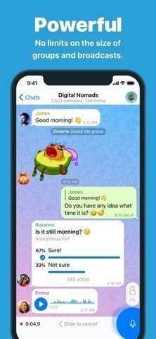 提供实时位置共享功能,便于朋友聚会或团队集结;内置的投票、话题标签和提及回复系统,优化了大型群组内的沟通与协作效率。