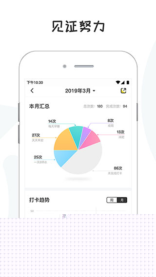 统计完成次数,更深度分析坚持周期、完成质量等趋势,揭示行为模式。