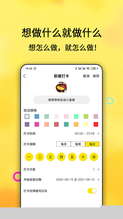 支持用户根据自身需求,自由创建涵盖作息、运动、学习、健康等多领域的专属习惯目标。