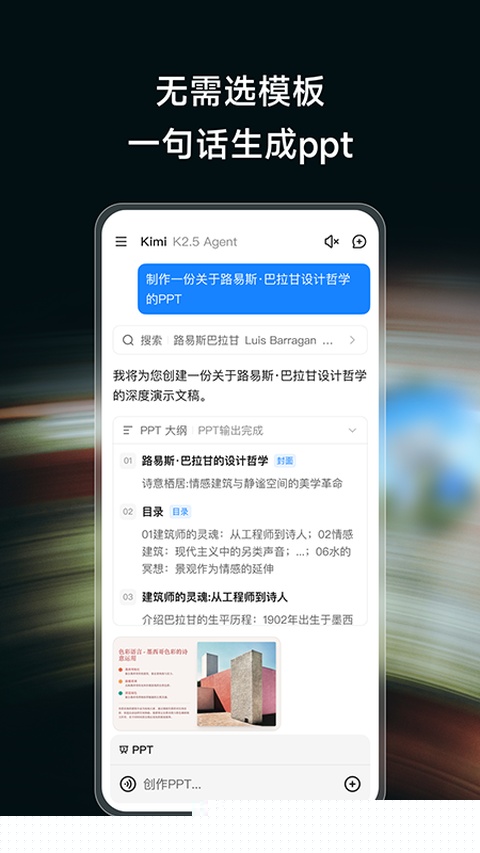 Kimi智能助手是一款融合前沿人工智能技术的多模态应用,其核心在于通过深度语义理解与自主任务规划能力,重塑信息处理与内容创作的工作流。凭借超长上下文处理与精准的意图识别,能够无缝衔接文档解析、数据分析、代码生成与创意写作等复杂场景,为知识工作者提供从信息输入到成果输出的全链路智能软件,显著提升专业领域的生产效率与决策质量。