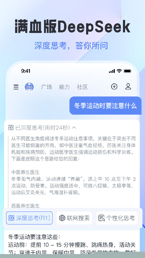 全新集成的DeepSeek R1满血版引擎,赋予应用深度逻辑推理与复杂问题分析能力。结合高速专线联网搜索,确保每一次回答逻辑严谨、条理清晰,更具备高度的时效性与信息权威性,应对各类知识性与实时性查询游刃有余。