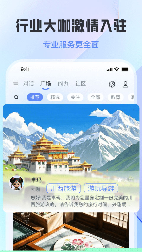 平台汇聚了覆盖医疗健康、法律政策、语言学习、考试辅导、旅游规划等垂直领域的专家级智能体。这些智能体经过专项训练,能够提供堪比领域专家的建议与咨询服务,满足用户从生活到专业发展的多层次、高精度需求。