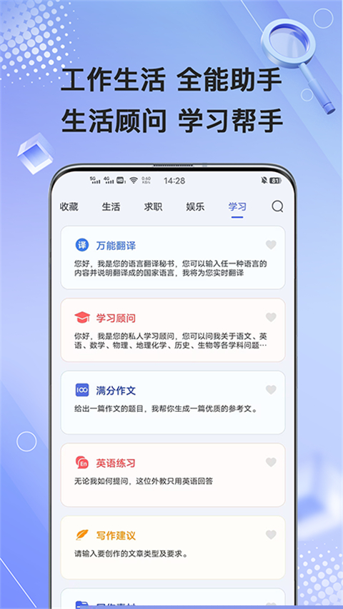 功能设计突破了单一写作范畴,延伸至PPT大纲构思、公文撰写、外语翻译、作文批改等办公与学习场景,实现了个人知识工作流的全面智能化升级。