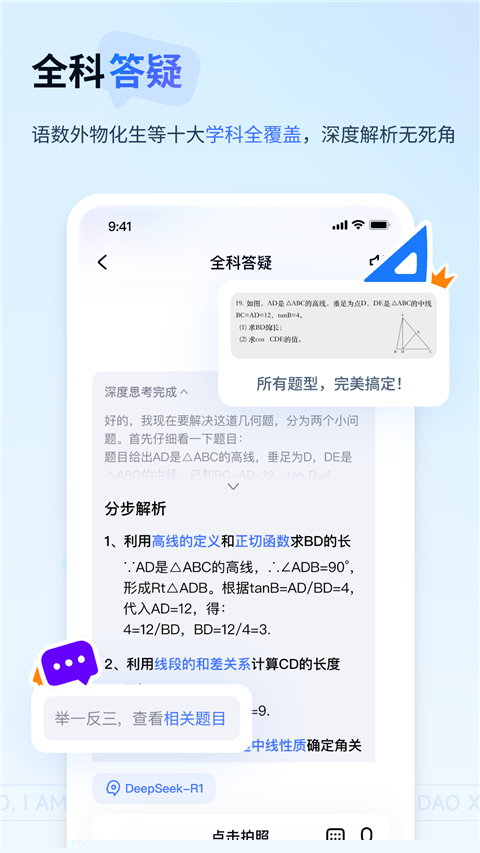 在学科辅导过程中,刻意遵循先解析后答案的呈现逻辑,通过对话形式逐步拆解问题核心,鼓励用户跟随思考,最终实现举一反三的学习效果。