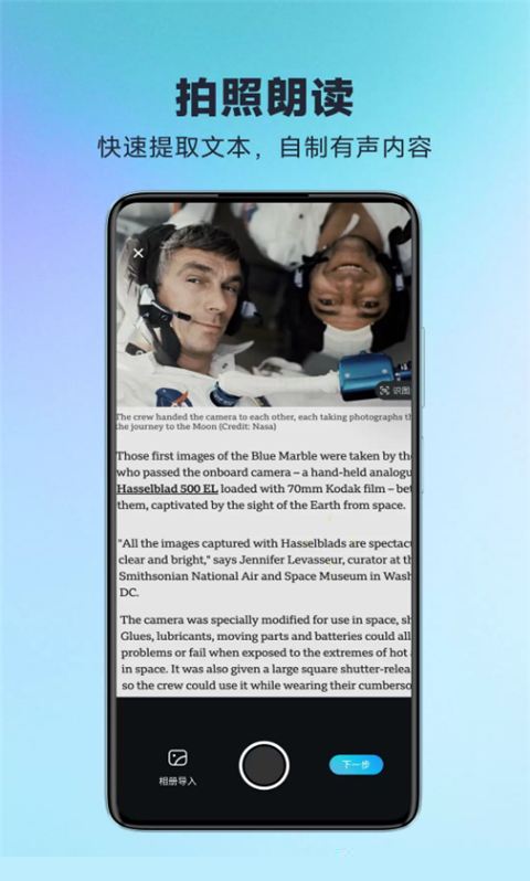 通过拍照功能快速捕捉并提取图片中的印刷文字,随后进行精准的语音播报,极大拓展了信息获取的边界。