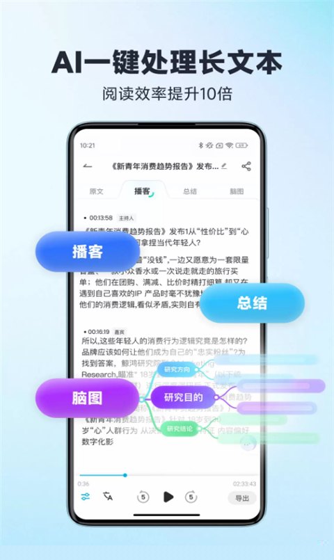 所有收听过的内容、生成的摘要与脑图均可一键保存为有声笔记,构建个人专属的知识库,便于后续的复习与回顾。
