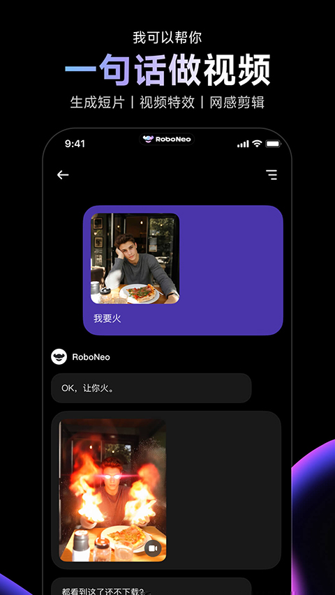 在指令输入后,RoboNeo的AI引擎开始工作,会首先对用户提供的素材(如有)进行深度视觉分析,识别主体、场景、风格等关键信息,再结合文本指令进行语义融合与创意发散。这个过程无需用户干预任何参数调节。随后,系统会生成一个或多个预览方案供用户选择。根据满意程度进行确认,或进一步提出微调指令,如将背景换成都市夜景、让字幕滚动速度慢一些,实现交互式的精雕细琢。
