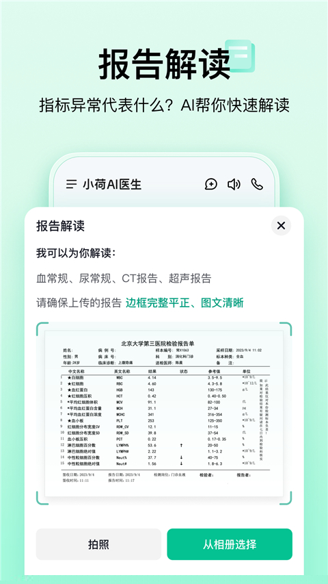 在报告解读与药品识别中,呈现原始信息,更将关键数据与结论进行结构化、可视化呈现,帮助用户快速抓住重点,理解复杂医学内容。