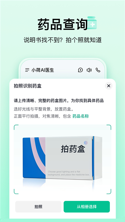利用图像识别技术,直接拍摄药品包装即可快速获取完整的药品说明书信息,包括成分、功效、用法用量及注意事项,有效提升用药安全。