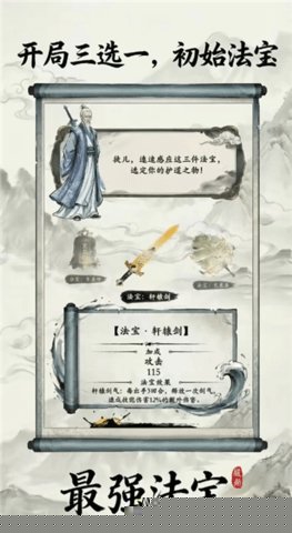 最强法宝是一款以炼制神器为核心的趣味修仙文字类游戏,作品打破了传统仙侠作品的固有模式,将器作为整个修仙冒险的核心,创新性地引入了五行相生相克的核心机制,使得策略性与趣味性得以兼顾。海量的法宝提供了自由组合的空间,特定的组合能够触发共鸣羁绊,带来强力的额外属性加成,让战力提升更具策略深度。