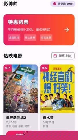 影帅帅特价电影票是一款整合了全国影院实时票务信息的移动应用,为影迷提供高性价比的观影软件。其核心在于打通了影院、票务与用户之间的信息壁垒,通过智能算法聚合各大平台的优惠活动,实现一键比价与便捷购票。应用覆盖了从新片上映、场次查询、座位选择到在线支付的完整闭环,显著降低了用户的决策成本与时间成本,让观影消费变得更加透明与高效。