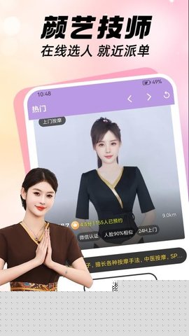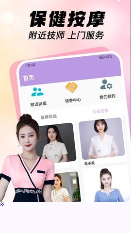 爱来按摩是一款专注于提供多样化按摩理疗服务的移动应用,为用户带来高品质、专业且安全的健康管理体验,整合了丰富的线下理疗资源,通过数字化平台连接用户与经过严格资质审核的专业按摩师,支持用户根据个人需求灵活选择服务项目、预约时间并完成支付,帮助现代都市人群便捷地缓解身体疲劳、促进身心放松,提升整体生活品质。
