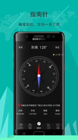 采用动态旋转罗盘盘面设计,方位指示清晰直观,视觉反馈即时,提升了方向判读的便捷性。