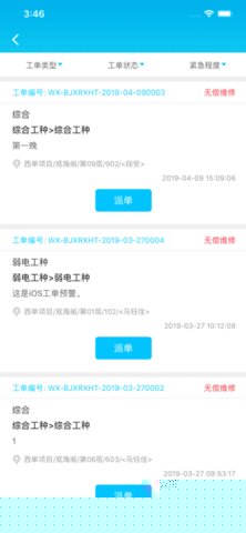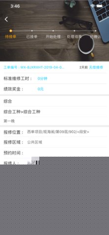 业主可通过关联的微信公众号、小软件提交报事;物业前台人员可代为录入;系统也支持来自内部巡检自动生成的工单,实现了报事渠道的全面覆盖。