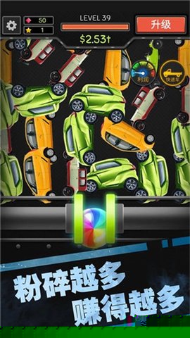 资源分配需在升级粉碎机功率、解锁高价值车型、加快传送带速度间做出权衡。