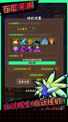 角色达到一定强度后可进行转生,重置部分进度并获取永久性属性加成,开启新一轮更具挑战性的成长循环。