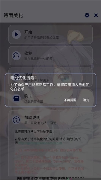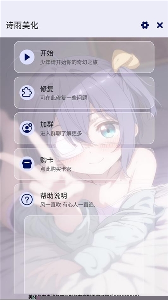 诗雨美化卡头插件是一款专为移动端游戏设计的界面视觉增强与个性化定制辅助软件,采用非侵入式的技术架构,在不触及游戏本体文件与核心逻辑的前提下,实现对游戏内用户界面元素的深度渲染优化与布局调整。用户能够依据个人偏好,对游戏内的各类视觉组件,状态栏、控制按钮、信息面板等进行透明化、尺寸缩放、位置移动等自定义设置,从而获得更清晰、更沉浸且更符合人体工学的交互界面,有效提升操作效率与视觉舒适度。