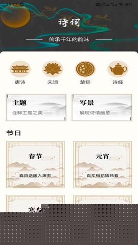 视觉设计以阅读体验为核心,排版清晰,配色舒适,功能布局直观,最大限度地减少干扰,让使用者能够沉浸于诗词的文字之美与意境之中。