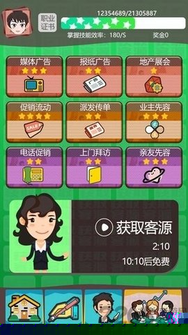 房产经纪人是一款专注于真实职场体验的手游,游戏以现代都市为背景,着重展现房产销售行业的多样性与复杂性。将从一名职场新人起步,经历各种销售挑战与随机事件,逐步提升自己的专业能力与市场洞察力。游戏注重策略思维与应变能力,还通过丰富的互动体验让深入了解房产市场的动态。的目标是通过不断努力与学习,积累客户资源,最终成为一名顶尖的房产销售专家,享受职场成长的乐趣与成就感。