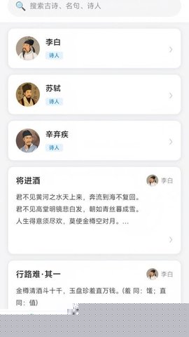 在主界面顶部的搜索框中,输入诗词标题、名句或作者姓名,系统将实时显示匹配结果。亦可使用高级筛选功能,通过朝代、体裁等条件组合进行精确查找。