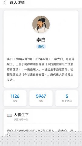 古诗词笺是一款专注于古典文学研究与赏析的数字化工具,集成了从先秦至明清历代经典诗词作品,构建了系统化的诗词数据库。其核心价值在于将原文、注释、赏析及诗人背景等多维度信息有机整合,通过智能检索与分类体系,为使用者提供沉浸式的诗词探索体验,助力深入领悟中华传统诗歌的艺术精髓与文化内涵。