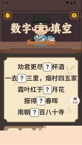 在古典诗词句子中填写正确数字,帮助用户熟悉诗词结构与内涵,提升文学素养与记忆能力。