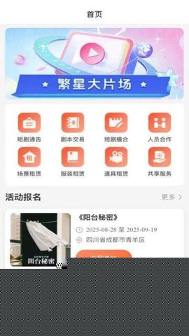 繁星大片场是一款面向微短剧创作者与制作团队的专业资源整合与服务平台,为短剧从策划到成片的全流程提供高效、便捷的一站式软件,深度整合了行业内的服装、道具、场景、剧本及人才信息资源,通过数字化的方式连接供需双方,降低创作门槛与制作成本,赋能每一位创作者将创意高效转化为高质量的视听作品。