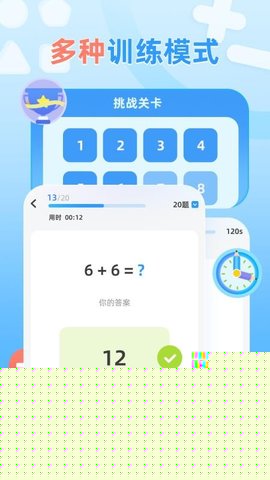 加减乘除训练是一款专为提升基础数学运算能力而设计的辅助学习工具通过系统化、结构化的练习内容,帮助用户特别是中小学生巩固四则运算的核心技能,内置海量题库,覆盖从简单到复杂的各类算式,通过循序渐进的训练模式,有效提升计算速度与准确性,并在此过程中培养使用者的逻辑思维与数学兴趣。