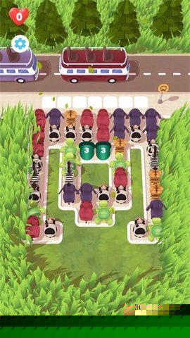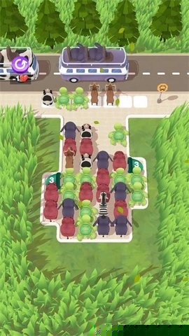 游戏的主要目标是清空场景内所有指定颜色的动物。通过手指滑动,为动物规划行进路线,引导们走向画面底部停靠的对应颜色卡车。当一辆卡车装载了足够数量的同色动物后便会驶离,完成该颜色动物的消除。整个过程中,需要避免动物被障碍物阻挡或走入死胡同,要高效利用有限的操作步数。