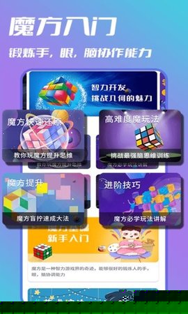 智慧魔方教程是一款专注于魔方技能系统化教学的移动应用,为全年龄段用户,特别是初学者,构建一个从入门到精通的完整学习路径。其核心价值在于将复杂的魔方还原理论与技巧,转化为结构清晰、易于跟学的视频课程与图文指南,有效提升用户的空间思维、记忆能力与手眼协调性。内容覆盖从经典三阶到高阶及异形魔方的多种类型,通过渐进式教学设计,使学习过程充满成就感与趣味性。