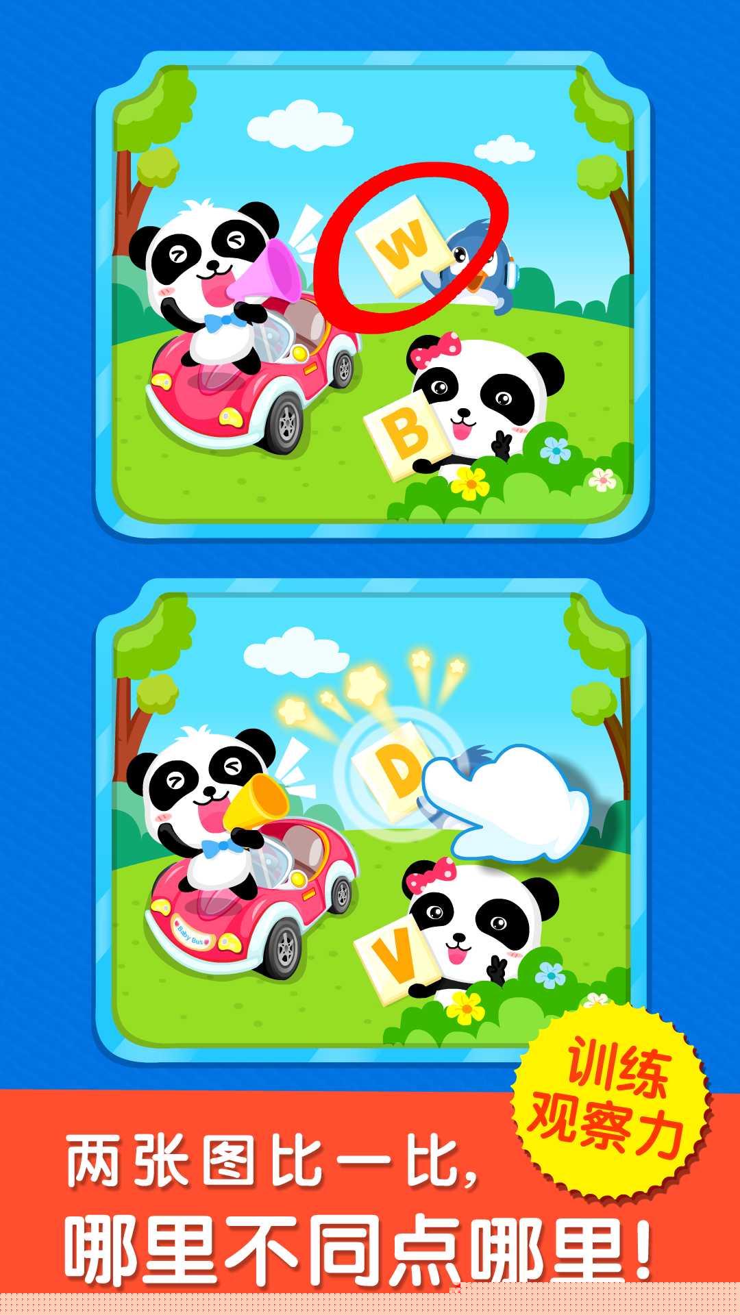 点击识别图片差异时提供即时视觉反馈,强化正确认知与手眼协调能力。