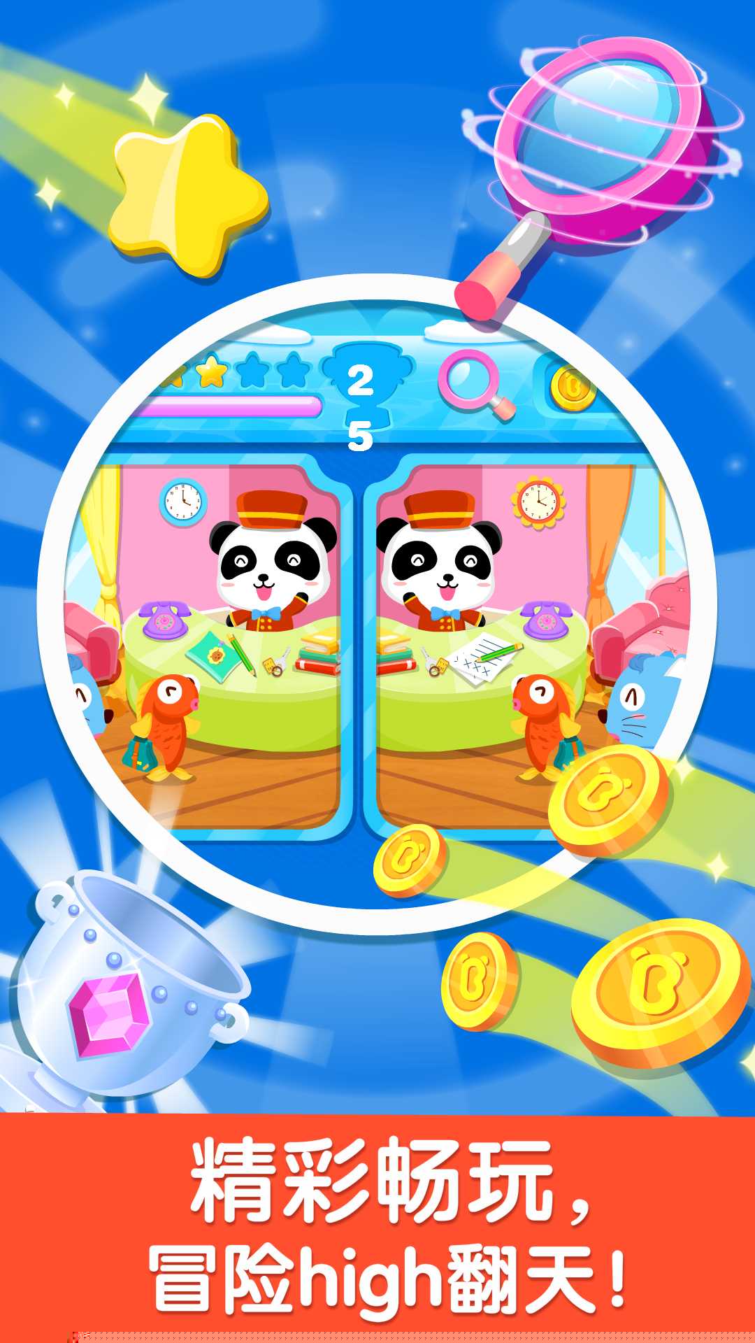 宝宝来找茬是一款专为儿童设计的益智启蒙软件,通过对比两张相似图片找出差异点,锻炼观察力与专注力。内容涵盖多个主题场景,包含丰富卡通元素与互动关卡,适合学龄前及低年级儿童使用,在娱乐中培养耐心与逻辑思维能力。