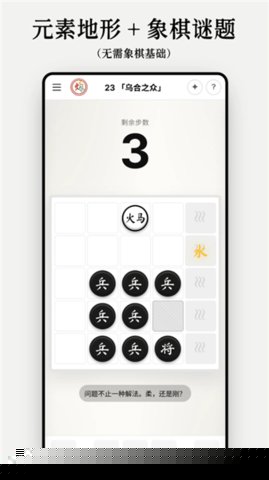元灵象棋是一款融合传统象棋规则与奇幻元素力量的策略解谜作品,为带来别具一格的智力挑战。游戏核心在于运用水、火、风、电四大元素为棋子赋予特殊能力,需在限定步数内,通过精妙的布局与技能组合,完成将死对方将帅的目标。其关卡均为手工设计的残局,摒弃冗长对弈,专注于短促而深刻的策略推演,适合各类利用碎片时间享受烧脑乐趣。