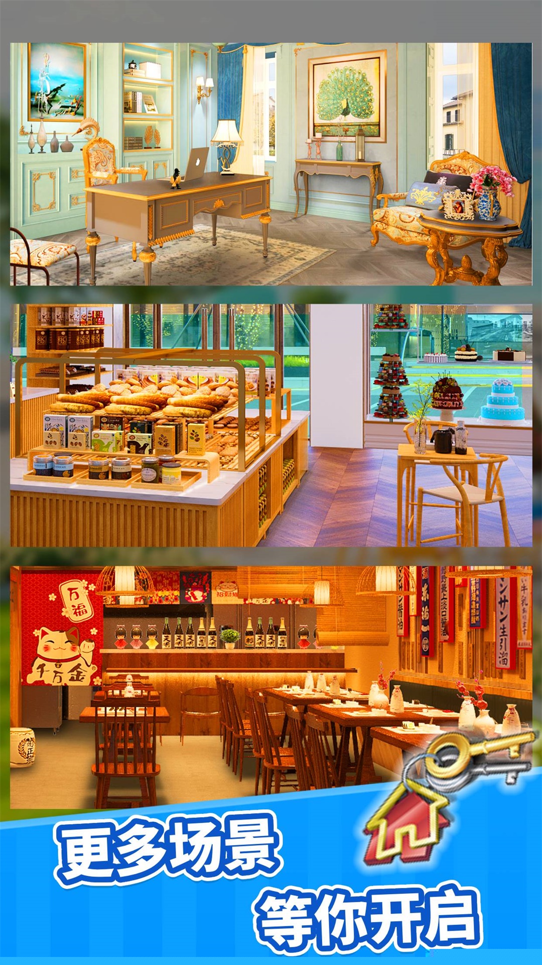 装潢系统提供极高的自由度,墙壁颜色、地板纹理、家具布局均可随意调整,真正实现个性化美学表达。
