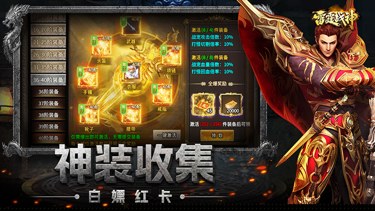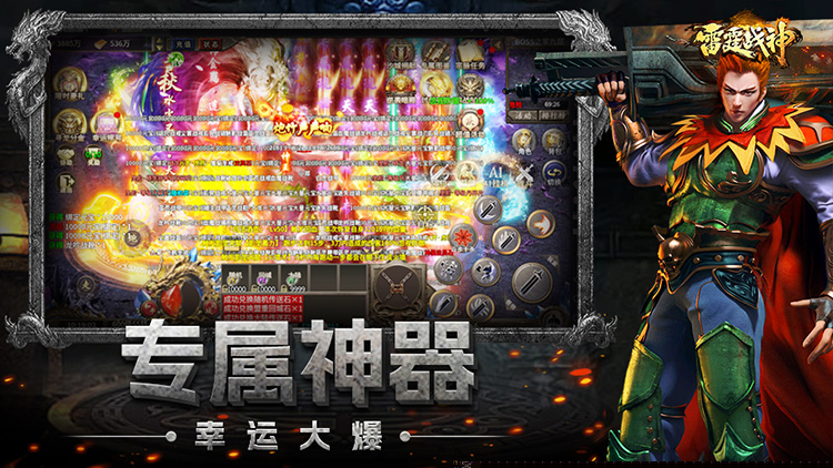 雷霆战神是一款以高攻速单职业为核心设计理念的全新带鉴宝版本角色扮演游戏,其核心玩法围绕强力宝物装备的获取与成长展开,提供了刀刀切割与刀刀吸血的爽快战斗反馈,为营造一个爆率超高、节奏明快、充满激情的PK与打怪体验环境。