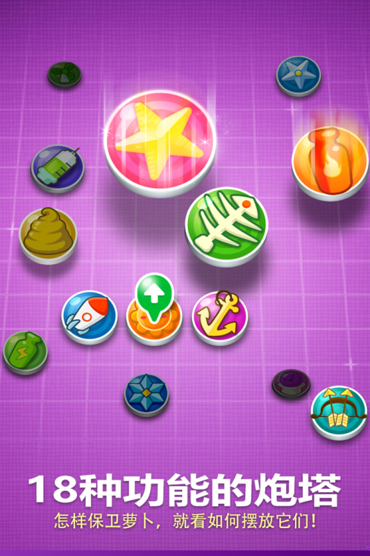 萝卜与部分特殊炮塔具备成长属性,通过关卡积累可实现永久性能力强化。