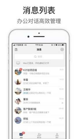 全面兼容macOS、Windows、iOS及Android操作系统,实现手机端与电脑端消息、文件、日程的实时同步。用户可在不同设备间无缝切换,保障移动办公与固定场所办公的连续性。