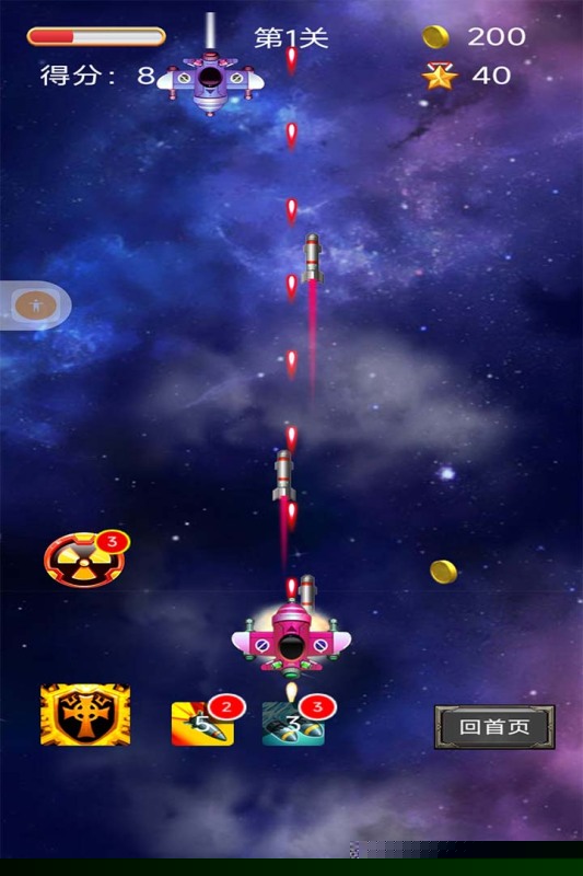 核心体验集中于驾驶舱内的生死搏杀。主要目标是清除所有入侵的空中单位,保护地面设施免受破坏。初始阶段战机性能较为基础,火力有限,机动性一般,初期策略应以熟悉敌机攻击前摇与弹道规律为主。利用摇杆或方向键进行精准位移,将战机始终置于屏幕安全区域,观察并记忆各类敌兵的炮弹发射节奏与覆盖范围。攻击时优先瞄准护甲薄弱的小型侦察机,快速积累首批升级模块。