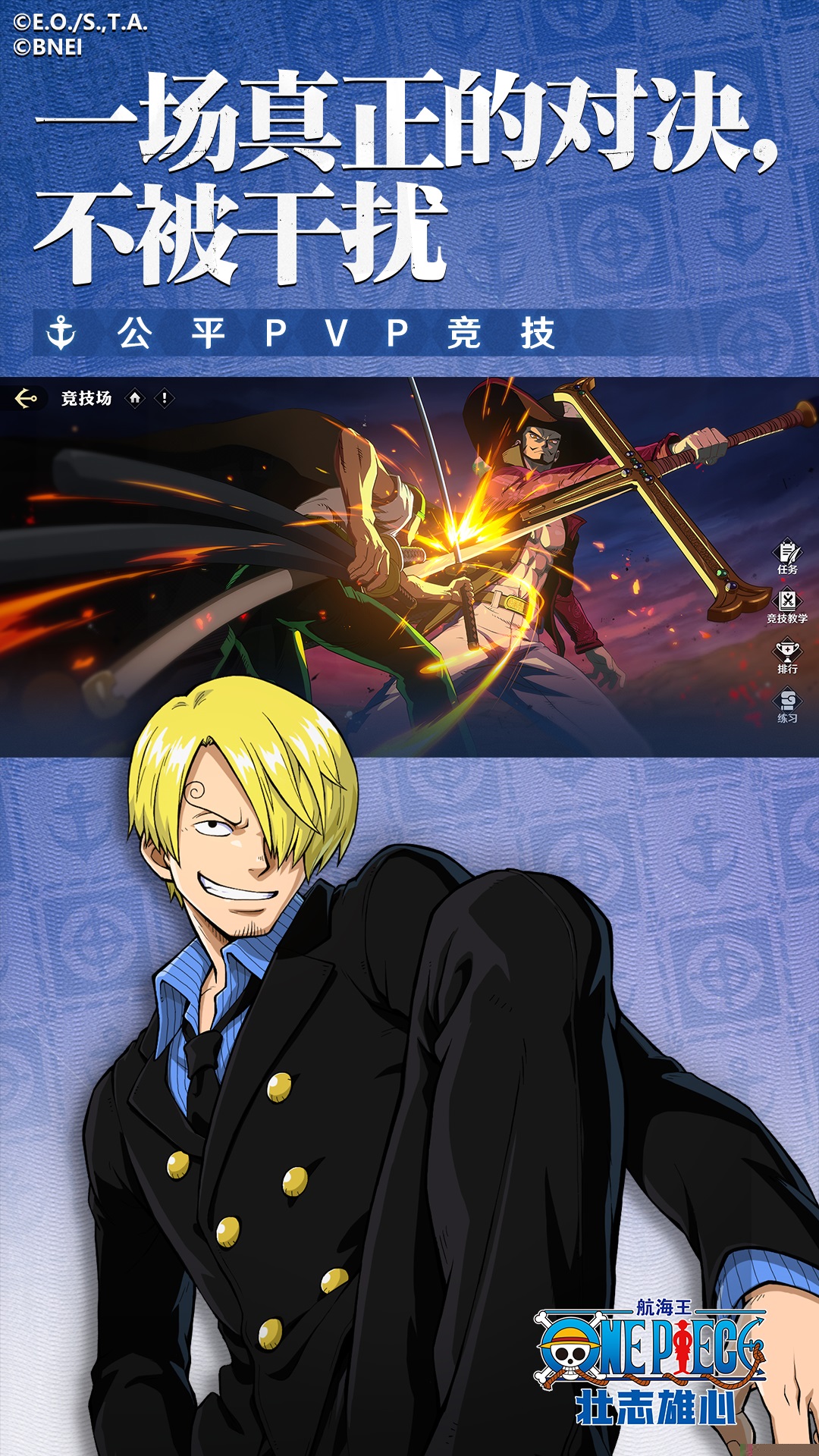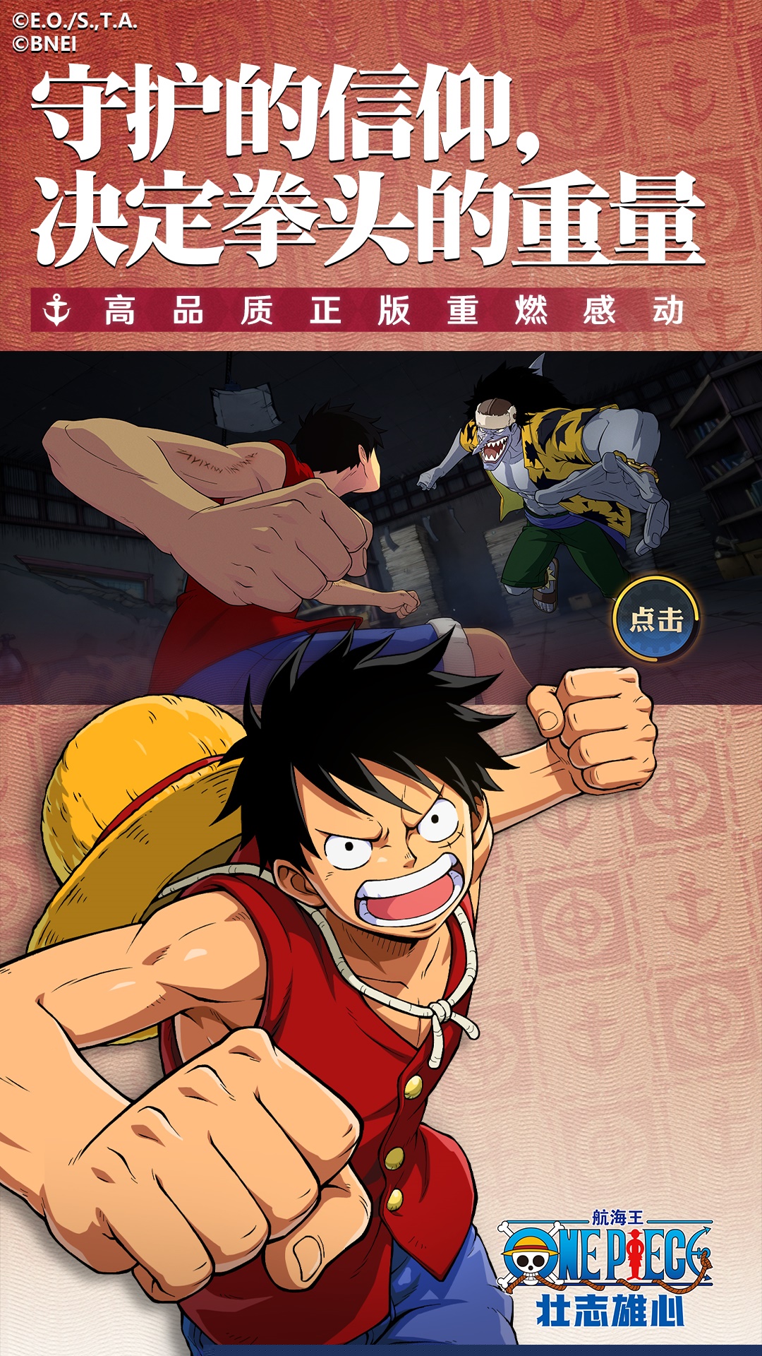 航海王壮志雄心是一款由魔方工作室群与万代南梦宫联合研发的航海王竞技动作手游。船长将置身于ONE PIECE的宏大世界,体验3分钟一局的指尖格斗盛宴,感受角色间热血沸腾的招式对决与策略博弈,重温原作经典剧情与伙伴羁绊。