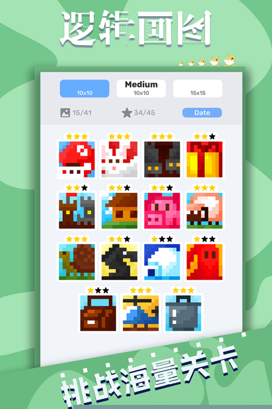 逻辑画图九游版是一款融合了数字推理与像素艺术创作的益智休闲游戏,通过解读行列数字线索,在网格中填充或标记方格,最终揭示隐藏的精美像素图画,锻炼逻辑思维的享受艺术创作的乐趣。