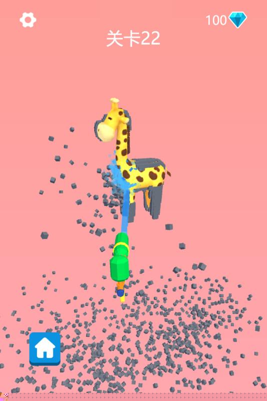 核心玩法围绕观察-冲刷-收集展开。进入关卡后,首先需要仔细观察被糖豆覆盖的玩具模型,识别其整体结构以及污渍最为厚重的区域。通常从模型的顶部或主要平面开始冲刷,利用水流的冲击力自上而下地清除大部分表面糖豆。对于顽固污渍或复杂缝隙,则需要调整水枪角度,进行近距离的定点冲洗。