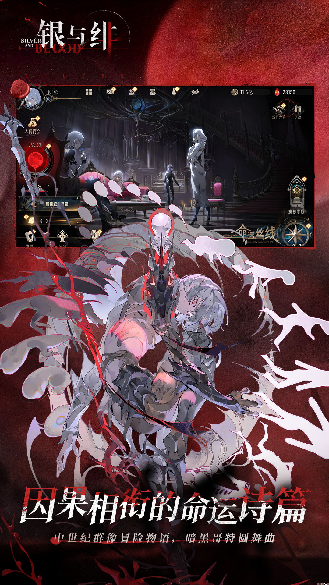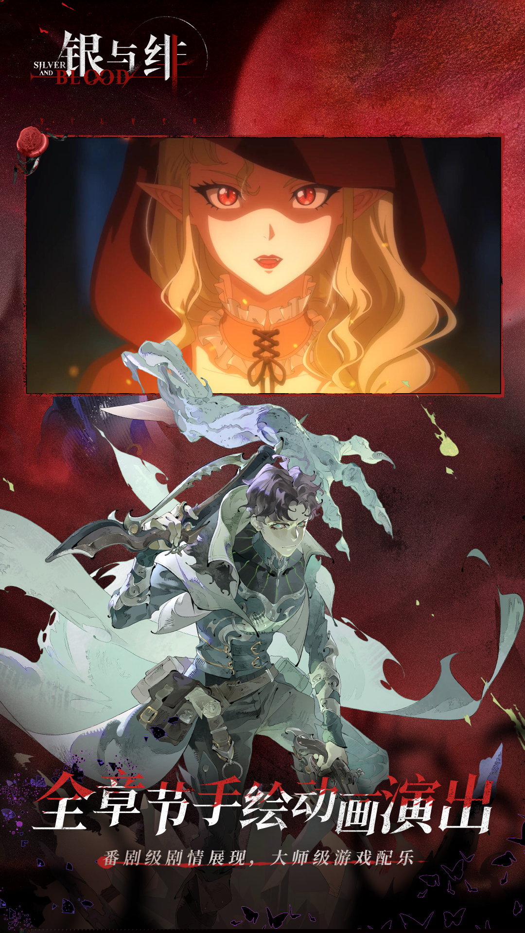 银与绯是一款以中世纪幻想大陆为背景,融合了哥特美学与策略卡牌玩法的角色扮演游戏。将扮演从火刑中奇迹生还的青年诺亚,在血液与记忆交织的黑暗世界里,探寻自身命运与大陆疾疫黑血病背后的古老秘密,并与被称为夜族的强大存在缔结羁绊,展开一段关于生存、背叛与救赎的史诗旅程。