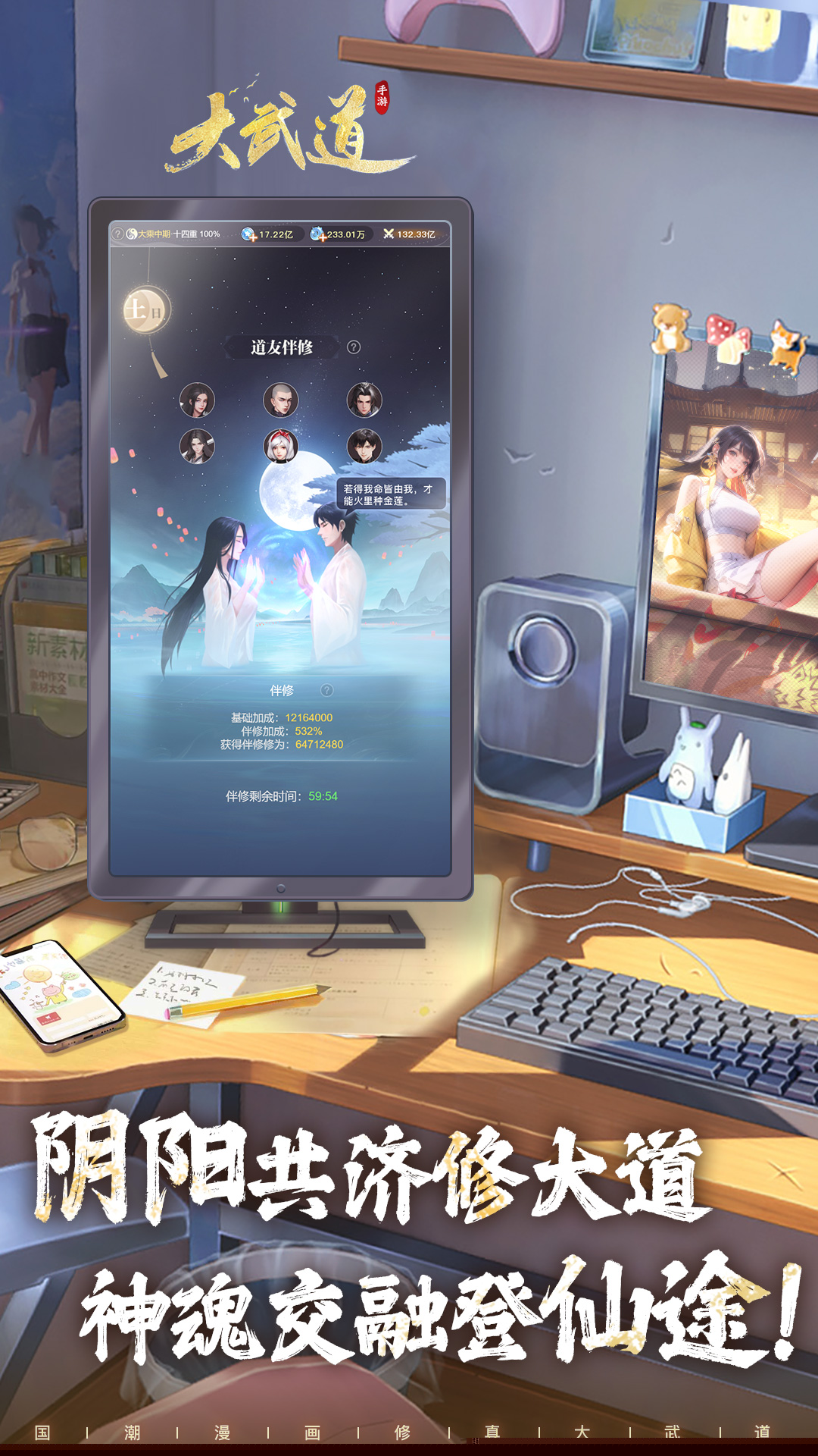 大武道是一款现代修真题材的国漫风格手游,以放置挂机为核心玩法,为提供轻松休闲的成长体验。游戏构建了一个宏大的原创世界观,将扮演穿越时空的命运之子,在诸天万界中历练冒险,收集资源强化自身,最终肩负起守护人类文明的重任。其剧情文本量超过百万字,情节曲折引人入胜。