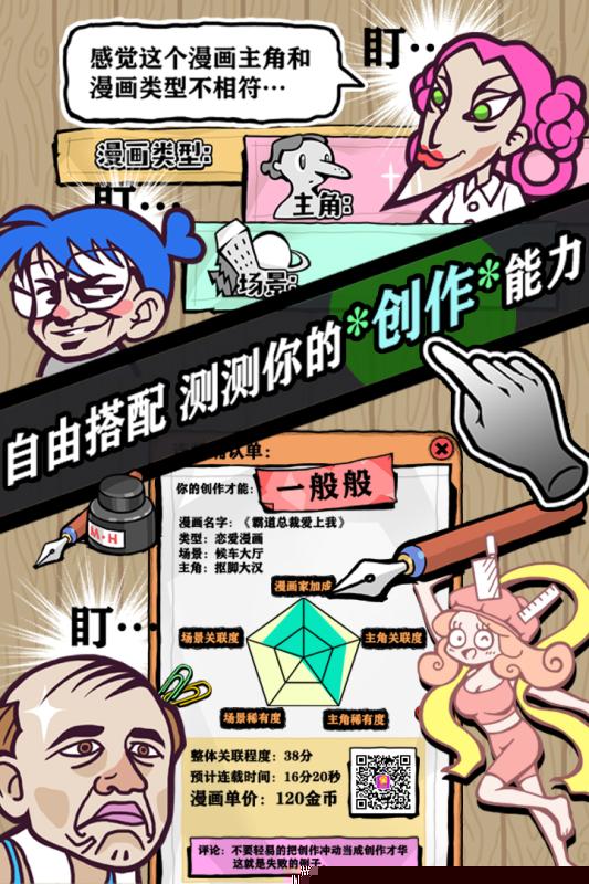 将抽象的灵感与创作转化为可视化的进度条与事件选择,需要为角色分配任务、解决创作瓶颈,亲身参与一部漫画从构思到成稿的全过程。