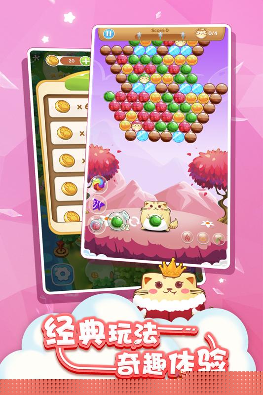 开心萌猫泡泡龙oppo渠道服是一款基于经典泡泡龙玩法,融合了萌宠养成与休闲消除元素的手机游戏。通过发射彩色泡泡完成消除任务,收集并培育各具特色的可爱猫咪,在轻松愉快的氛围中享受策略与收集的双重乐趣。该渠道版本为OPPO手机用户提供了专属的登录与福利服务。