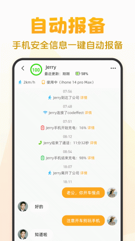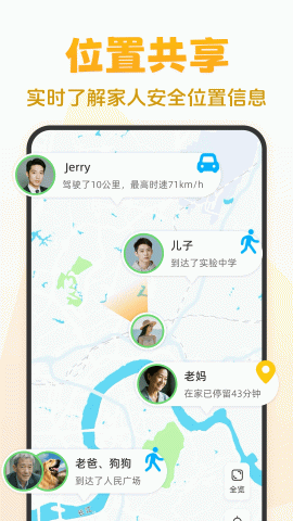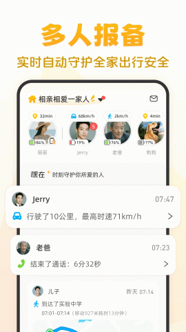 整合了位置、出行方式、设备电量、通话概况等数据,在一个界面内提供亲友状态的综合视图,便于快速掌握整体情况。
