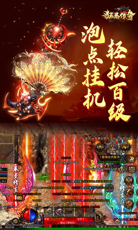 狂暴传奇是一款基于经典1.85版本框架进行微变创新的角色扮演网络游戏,其核心在于重现复古情怀的注入现代节奏。游戏构建了战、法、道三大传统职业体系,并创新引入英雄协同作战概念,由此衍生出丰富的职业组合与策略深度。在保留原版核心玩法和装备体系的基础上,显著提升了角色的移动速度、攻击频率以及物品爆率,营造出快节奏、高回报的沉浸式战斗环境。游戏融入了绝学与生肖等特色成长系统,为角色能力拓展提供了多元路径,兼顾了怀旧与追求新鲜体验用户的需求,尤其适合热衷于团队争夺、装备积累与激烈城战的群体。
